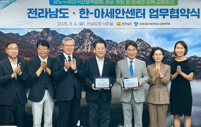 협약식엔 김영록 전남도지사, 김재신 한-아세안센터 사무총장이 등이 참석했다.