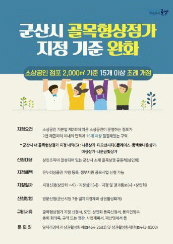 시는 최근 ‘군산시 골목형상점가 지정에 관한 조례’ 개정을 통해 지정 기준을 기존 2,000㎡ 이내 면적에 소상공인이 운영하는 점포 상업지역 25개 이상, 비상업지역 20개 이상 밀집에서 15개 이상으로 밀집 기준을 완화했다.