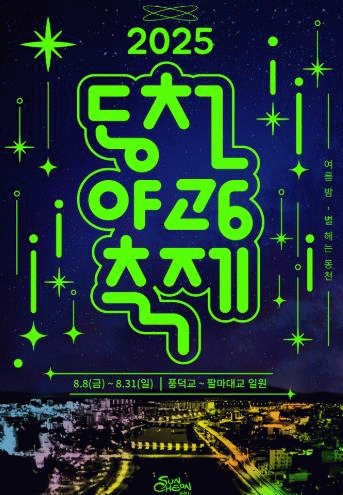 ‘별 헤는 동천’을 주제로 열리는 이번 축제는 동천변을 따라 조성된 야간 경관 조형물과 시민 참여형 프로그램이 어우러진 체류형 여름축제로, 낮과는 전혀 다른 낭만과 감성이 흐르는 동천의 야경을 배경으로 빛과 음악이 함께하는 색다른 여름을 선사한다.