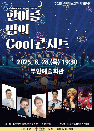 ‘한여름 밤의 Cool콘서트’는 부안예술회관 기획공연으로 8월의 마지막 무더운 여름을 시원하고 신나게 보내자는 취지로 준비한 콘서트다.