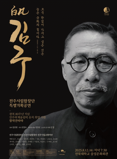 전주시는 오는 12일 오후 7시 30분, 전북대학교 삼성문화회관 대극장에서 전주시립합창단의 광복 80주년 기념 특별 공연인 ‘백범 김구’가 펼쳐진다고 6일 밝혔다.