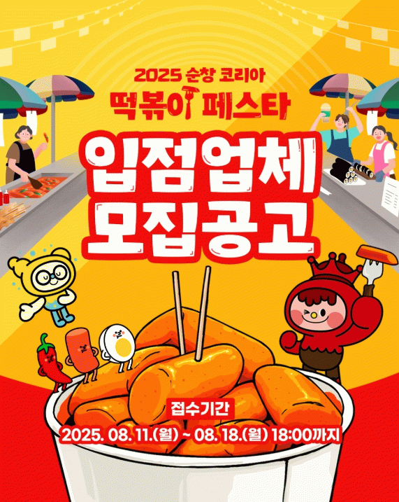 한편,‘2025 순창 코리아 떡볶이 페스타’는 전국의 인기 떡볶이 브랜드와 숨은 맛집, 그리고 다양한 분식 전문점들이 한자리에 모이는 대한민국 최고의 분식 축제로, 11월 15일부터 16일까지 순창발효테마파크와 순창전통고추장민속마을 일원에서 개최될 예정이다.