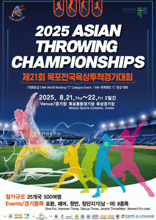 대회 기간 ‘제21회 목포전국육상투척경기대회’도 함께 열리며, 국내외 정상급 선수들이 대거 출전해 더욱 치열하고 수준 높은 경쟁이 펼쳐질 예정이다.