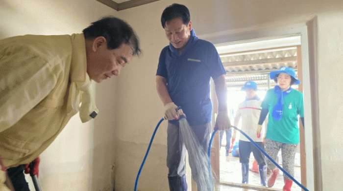이 부의장은 이날 현장에서 토사 제거와 침수된 상가·주택 정리 작업 등을 함께 하며 피해 주민들의 고충을 세심하게 살폈다.