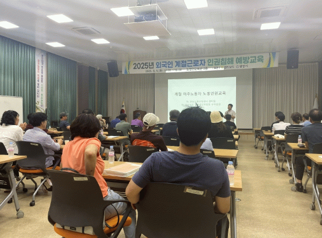 교육 강사인 문길주 전남노동권익센터장은 외국인 계절근로자 프로그램 현황과 인권침해 피해사례를 통해 근로기준법 등 고용주 준수사항을 안내하고 고용주들의 애로사항을 파악하는 시간을 가졌다.