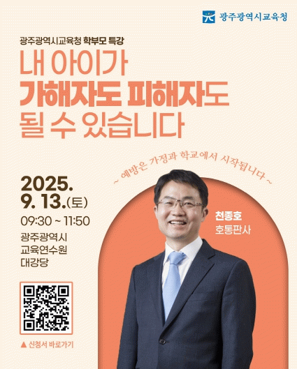 시교육청은 특강에 앞서 6일부터 오는 9월 5일까지 QR코드 또는 자녀가 다니고 있는 학교를 통해 참석자를 접수받는다.