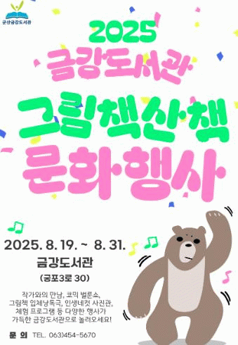 이번 행사는 금강도서관 특화 주제인 ‘그림책’을 매개로 세대와 성별을 아우르는 다채로운 독서문화 프로그램을 준비해 시민들이 그림책의 매력에 푹 빠질 수 있는 기회를 제공할 예정이다.
