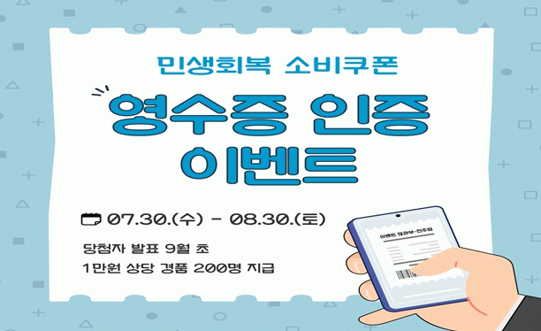 또한, 소비 촉진을 위해서는 오는 30일까지 민생회복 소비쿠폰 이벤트를 개최해 참여 도민을 대상으로 1인당 1만원(총 200만원) 상당의 경품을지급할 계획이다.