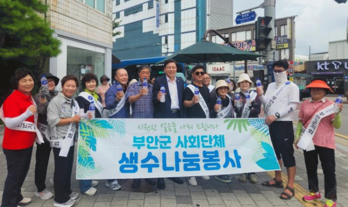이번 봉사활동은 관내 사회단체가 7월 22일부터 9월 4일까지 매주 화요일과 목요일에 군민 및 방문객을 대상으로 하는 폭염 대비 생수 무료 나눔 행사로서 지난 2021년부터 5년 동안 변함없이 이어지고 있다.