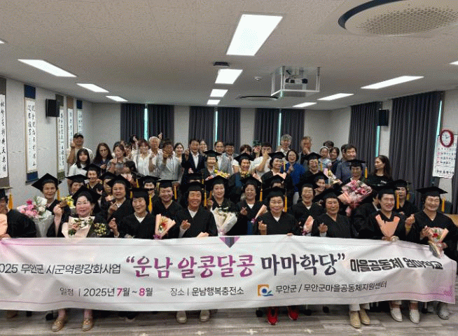 이날 졸업식은 졸업생인 마마학당 학생들 30명과 가족들, 지역주민 등 80여명이 참석한 가운데, 무안군 김병중 부군수를 비롯한 지역 관계자들도 자리해 어머니들의 활동과 배움에 진심 어린 축하를 보냈다.