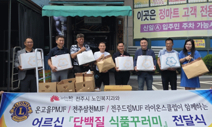 온고을 PMJF 라이온스 클럽(회장 이상칠)은 7일 단백질 결핍이 우려되는 의료-돌봄 대상 노인의 건강을 지원하는 ‘단백질 식품꾸러미’ 지원을 위한 첫 번째 활동을 실시했다.