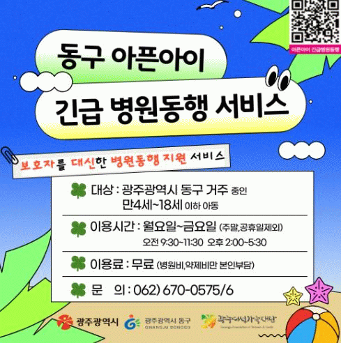 광주 동구가 지난 2023년 4월 첫발을 내디딘 동구형 광주다움 통합돌봄 ‘아픈 아이 긴급 병원 동행 서비스’가 지난 2년여 간 990여 명의 보호자에게 혜택을 제공하며 큰 호응을 얻고 있다.