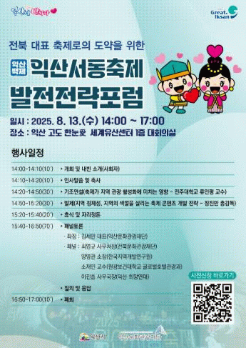 익산시 관계자는 "서동축제는 단순한 지역행사를 넘어 백제역사유산과 함께하는 국가대표 문화관광축제로 성장하고자 한다"며 "포럼에서 나오는 제안을 면밀히 검토해 축제 기획에 적극 반영하겠다"고 밝혔다.