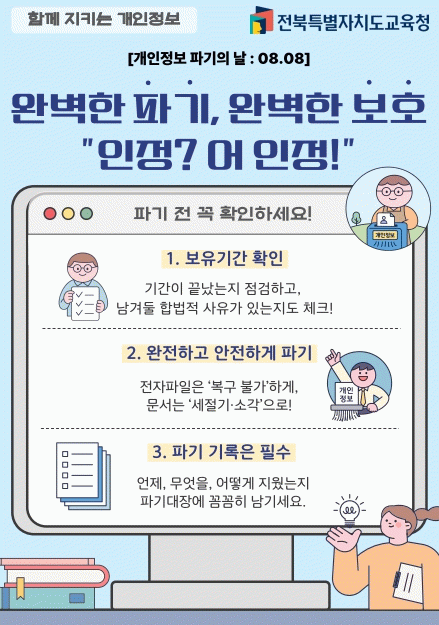 오선화 미래교육과장은 “‘개인정보 파기의 날’ 운영을 통해 개인정보 관리의 책임성과 실천력을 높이고, 불필요한 개인정보의 상시 점검·삭제 문화를 정착시켜 나가겠다”고 말했다.