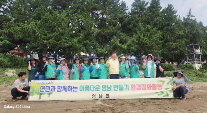 장경철 영남면장은 “최근 태풍과 높은 파도로 인해 해양쓰레기가 대량 밀려와 해수욕장 관리에 어려움이 있지만, 주민들과 힘을 모아 청정 영남의 이미지를 지켜나가기 위해 지속적으로 환경정비 활동을 이어가겠다”고 말했다.
