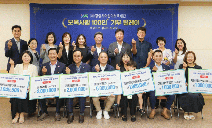참석한 기탁자 및 기탁액은 △케이스틸(주)(대표 강현우) 500만 원 △광양문화원(원장 이형휘) 200만 원 △금실농원(대표 오길석) 200만 원 △미라클YT펌프(대표 원영태) 100만 원 △케이엠이엔씨(주)(대표 마지애) 100만 원 △수퍼루키어린이집(원장 황은진) 100만 원 △광양의봄어린이집(원장 피옥순) 100만 원이다.