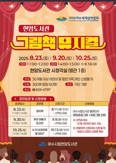 공연 관련 자세한 사항은 여수시 현암도서관으로 문의하면 된다.