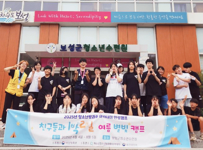 보성군청소년수련원과 연계해 1박 2일간 진행한 이번 캠프는 “친구들과 1박2일 여름별빛 인성캠프” 를 주제로 수련 활동 도전과 다채로운 힐링 체험 프로그램을 기획하여 자아 탐색의 시간 및 청소년기 건강한 성장 기회를 제공했다.