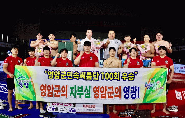 영암군민속씨름단은 통산 100회 우승을 발판 삼아 150회, 200회 우승을 향해 새로운 도약을 준비하고, ‘민속씨름 수도 영암’의 위상을 더 공고히 해 나간다는 방침이다.