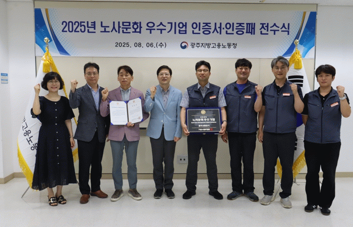 ‘노사 문화 우수 기업’은 고용노동부가 상생과 동반 성장의 조직 문화 실현에 솔선수범한 사업장을 선정해 포상하는 제도로, 올해는 지역별 심사를 거쳐 광주교통공사 등 8개 공공기관을 포함해 총 40개사가 최종 선발됐다.