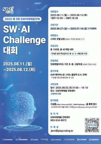한편, SW미래채움 사업은 과학기술정보통신부가 주관하는 디지털 교육 확산 프로그램으로, 전북 지역 청소년에게 소프트웨어(SW)와 인공지능(AI) 교육 기회를 넓히고 기초 디지털 역량을 체계적으로 강화할 수 있도록, 전북특별자치도와 남원시의 지속적이고 적극적인 지원 아래 추진되고 있다.