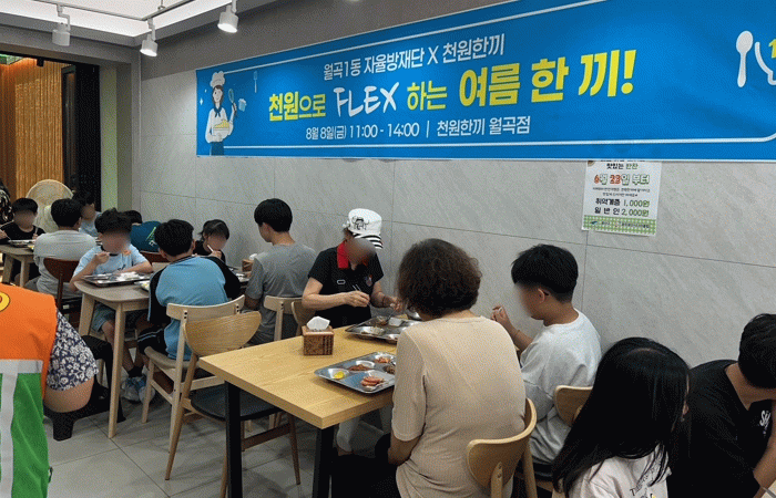 한편, 천원한끼 식당은 65세 이상 노인과 장애인 등 복지 취약계층에 1,000원으로 점심을 지원하고 있다. 일반 주민도 3,000원에 이용할 수 있으며, 월곡점 외에도 우산점, 도산점, 첨단점 등 총 4곳이 운영 중이다.