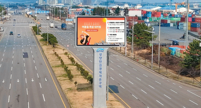 한편 광양경자청은 공익 목적의 영상 콘텐츠를 전광판에 게재하길 희망하는 기관이나 단체를 대상으로 상시 신청을 받고 있다.