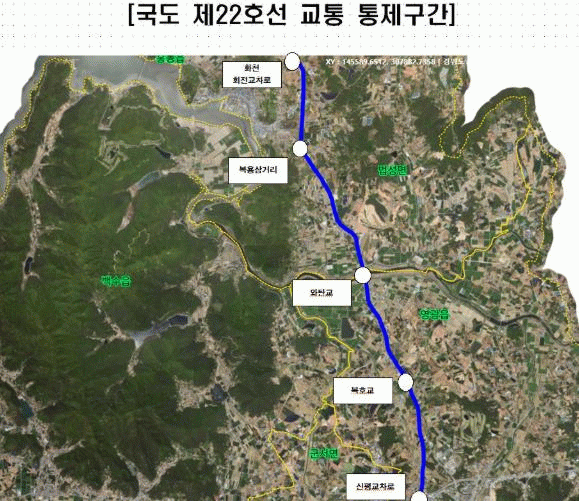 법성·홍농방면의 우회구간은 ‘신평교차로 – 만곡사거리 – 논산보건진료소 – 장산리 회전교차로 – 원불교 영산성지 – 국민여가캠핑장 – 법성포 방면’으로 안내할 계획이다.