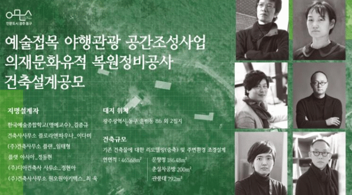 공모에는 ▲김종규 한국예술종합학교 교수 ▲이다미 플로라앤파우나 소장 ▲임태형 플랜 건축사사무소 소장 ▲정동현 플랫아시아 소장 ▲정현아 디아건축사사무소장 ▲최욱 원오원아키텍스 소장 등 국내 건축계를 대표하는 실력 있는 건축가들이 참여한다.
