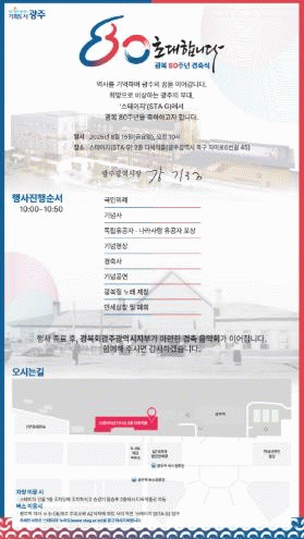 항일·민주정신과 촛불로 민주주의를 지켜온 광복 이후 광주의 80년을 기억하고, 인공지능(AI)과 미래차 등 첨단산업, 문화 역량으로 펼쳐갈 앞으로의 80년에 대한 희망을 담았다.