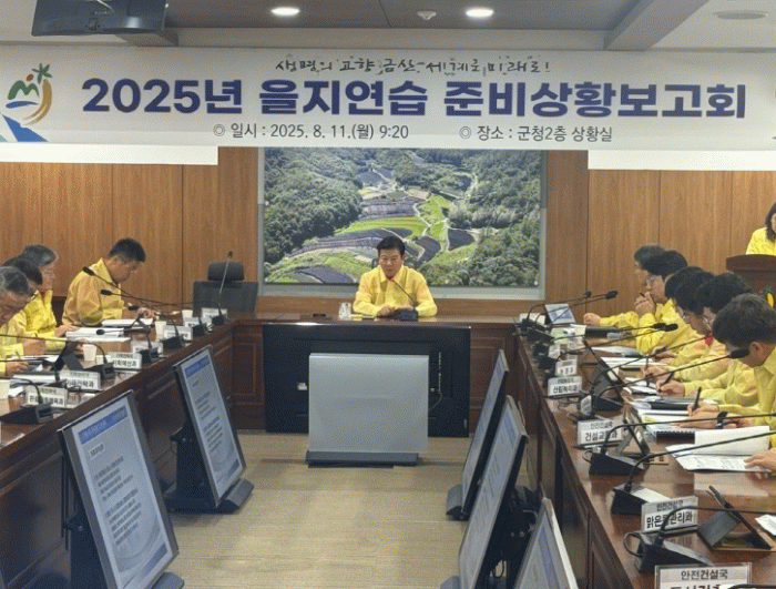 이날 보고회는 박범인 금산군수의 주재로 국장, 과장, 보건소장 등 20여 명이 참석한 가운데 진행됐으며 을지연습 준비상황 및 세부 연습계획을 점검했다.