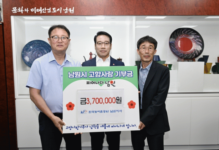 한국농어촌공사 남원지사는 2024년에 고향사랑기부금 500만원을 기탁했던 것을 포함해 총 870만원을 누적 기부하면서, 건강한 기부문화 형성과 남원시 지역발전에 크게 기여하고 있다.