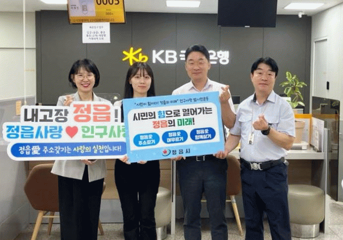 시는 지난 6월부터 ‘시민이 힘이다! 정읍의 미래’를 슬로건으로 릴레이 캠페인을 이어오고 있는데, 최근에는 한서요양병원, KB국민은행 정읍지점, 신용보증기금 정읍지점이 잇따라 참여해 실질적인 성과 창출에 나섰다.