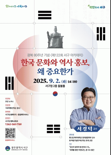김이강 서구청장은 “광복 80주년을 맞아 우리 문화와 역사에 대한 이해를 넓히고 자긍심을 높이는 뜻깊은 자리를 마련했다”며 “많은 시민이 참여해 함께 배우고 느끼는 시간이 되길 바란다”고 밝혔다.