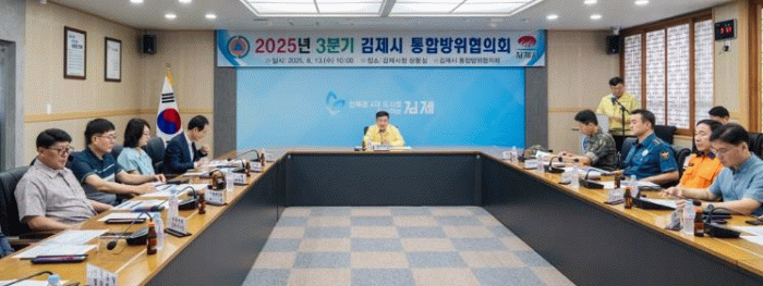 시는 이날 시청 2층 상황실에서 ‘2025년 3분기 김제시 통합방위협의회’를 개최하고 협의회 의장 정성주 시장을 비롯한 지역 안보 관계자 18명이 참석해 오는 18일부터 21일까지 3박 4일간 진행되는 2025년 을지연습과 관련, 지역 통합방위태세 점검과 상호 협조 등 안전한 훈련 추진 방안을 중점으로 회의를 진행했다.