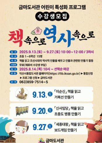 익산시 관계자는 "문학과 역사를 접목한 이번 프로그램 유익한 배움의 기회가 되길 바란다"며 "앞으로도 어린이들의 눈높이에 맞춘 특성화 프로그램을 지속 운영하겠다"고 말했다.