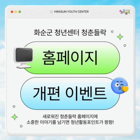 새롭게 단장한 홈페이지에서는 ▲화순군 청년 정책 및 지원사업 안내 ▲청년센터 및 미디어공작소 프로그램 정보 등 청년 맞춤형 콘텐츠를 한눈에 확인할 수 있다.