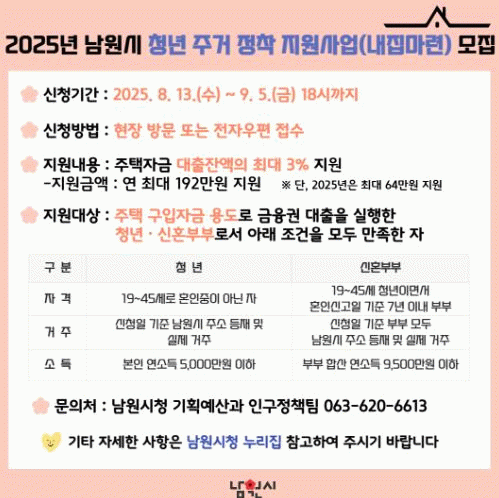 세부사항은 남원시 누리집을 참고하거나 기획예산과으로 문의하면 된다.