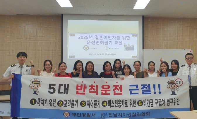 정성일 무안경찰서장은 “외국인 주민들도 교통법규를 숙지하고 실천해야 지역 전체의 안전이 지켜진다”며 “외국인 주민들의 어려움이 없도록 지속적으로 현장 맞춤형 교육을 확대해 무안군의 교통 안전 문화를 정착시키겠다”고 밝혔다.