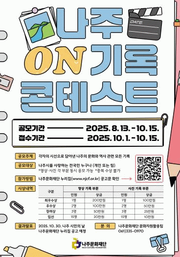 윤병태 나주문화재단 이사장은 “시민들이 바라본 나주의 매력을 다양한 시각에서 담아내고 이를 지역 문화 확산의 계기로 만들겠다”며 “관심 있는 분들의 많은 참여를 바란다”고 밝혔다.