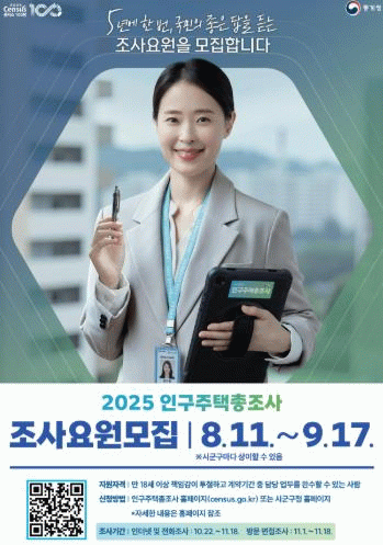 시 관계자는 “인구주택총조사는 국가 주요 정책의 기초가 되는 중요한 조사”라며 “사명감과 자부심을 갖고 참여할 분들의 많은 지원을 바란다”고 말했다.
