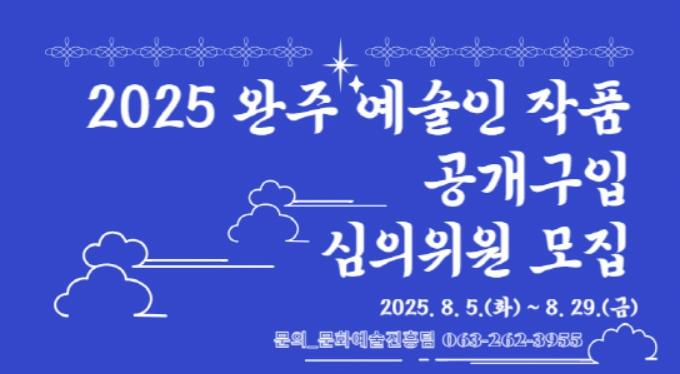정철우 완주문화재단 상임이사는 “이번 심의위원 모집은 완주 예술인들의 창작활동을 지원하는 중요한 절차”라며 “전국 각지의 시각예술 전문가들이 참여해 주셔서 공정하고 전문성 있는 심의가 이뤄지길 바란다”고 말했다.