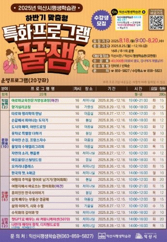 익산 시민은 누구나 익산시평생학습관 누리집에서 신청할 수 있다.