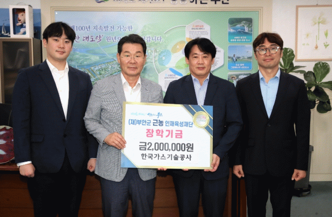 장학금 기탁식에 참여한 이영현 수소인프라운영실장과 구창훈 부장은 “부안지역인재들이 꿈을 향해 도전할 수 있는 여건을 만드는 데 조금이나마 도움이 되기를 바란다”며 “앞으로도 사회적 책임을 다하는 공기업으로서 다양한 사회공헌 활동을 지속해 나가겠다.”고 기부의 뜻을 전했다.