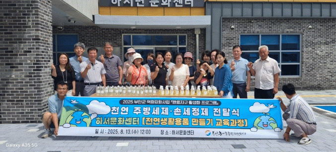 참여자들은 친환경 재료를 활용해 주방세제 50개와 손세정제 50개, 총 100개를 제작했으며, 완성된 천연생활용품은 하서면 경로당과 마을회관에 비치돼 주민들이 함께 사용할 예정이다.