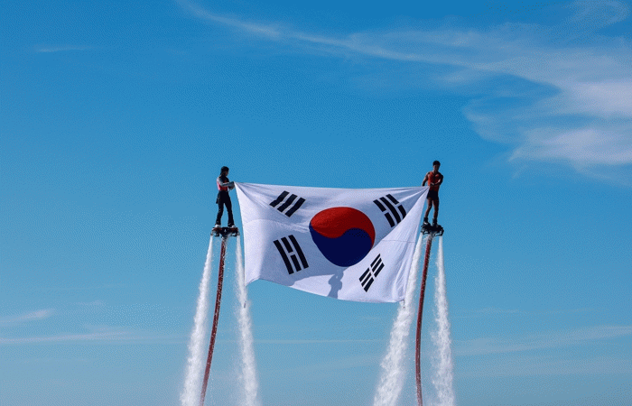 또한 바다에서는 세차게 뿜는 물줄기를 타고 공중으로 솟아오르는 플라잉 보드로 태극기를 펼치는 공연을 선보여 눈길을 끌었다.
