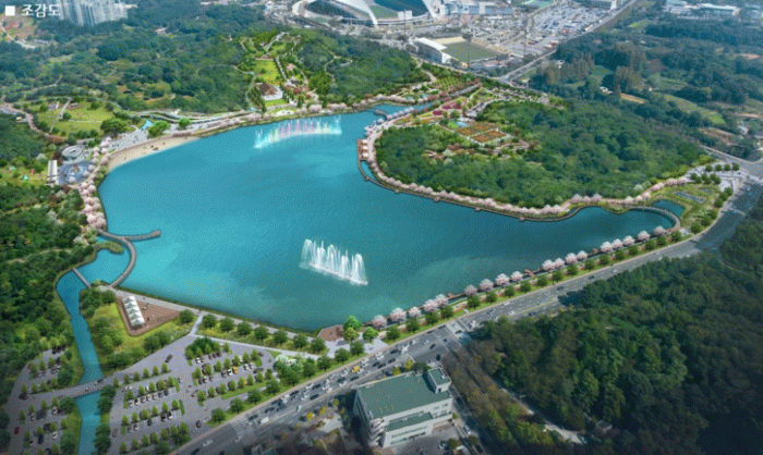 또, 호수 내부에는 길이 130m, 높이 50m의 국내 최대 규모의 음악분수가 조성돼 감성 음악과 함께 야간 경관이 아름다운 다시 찾고 싶은 명품 호수공원으로 선사할 계획이다.