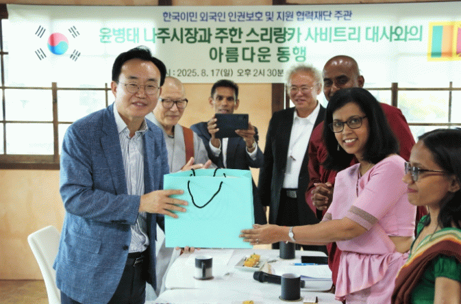 나주시는 17일 한국이민외국인인권보호및지원협력재단이 주관한 사비트리 파나보케(Savitri Panabokke) 주한 스리랑카 대사의 호남지역 특별강연에 앞서 환담을 갖고 나주에서 생활하는 스리랑카 출신 노동자들의 인권 보호와 권익 보장 방안에 대해 의견을 나눴다고 밝혔다.