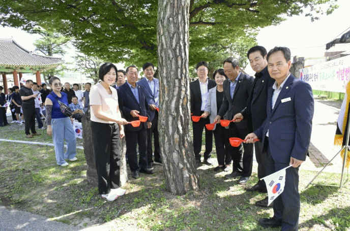 이어 참석자들은 해방소나무에 막걸리를 올리는 전통 의식을 치렀다.