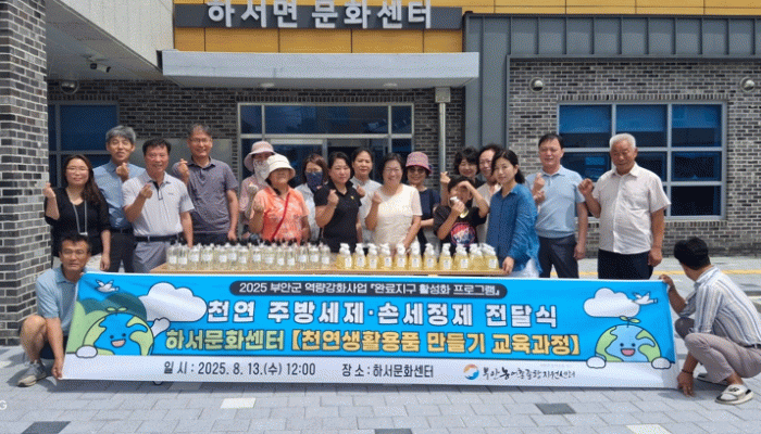 부안군 농어촌종합지원센터 관계자는 “이번 교육과정은 생활 속 친환경 실천을 배우는 기회이자, 참여자들이 제작한 천연생활용품을 통해 지역사회 나눔 문화를 활성화한 의미 있는 활동”이라며 “앞으로도 지역사회와 함께하는 다양한 프로그램을 지속적으로 운영하겠다”고 말했다.